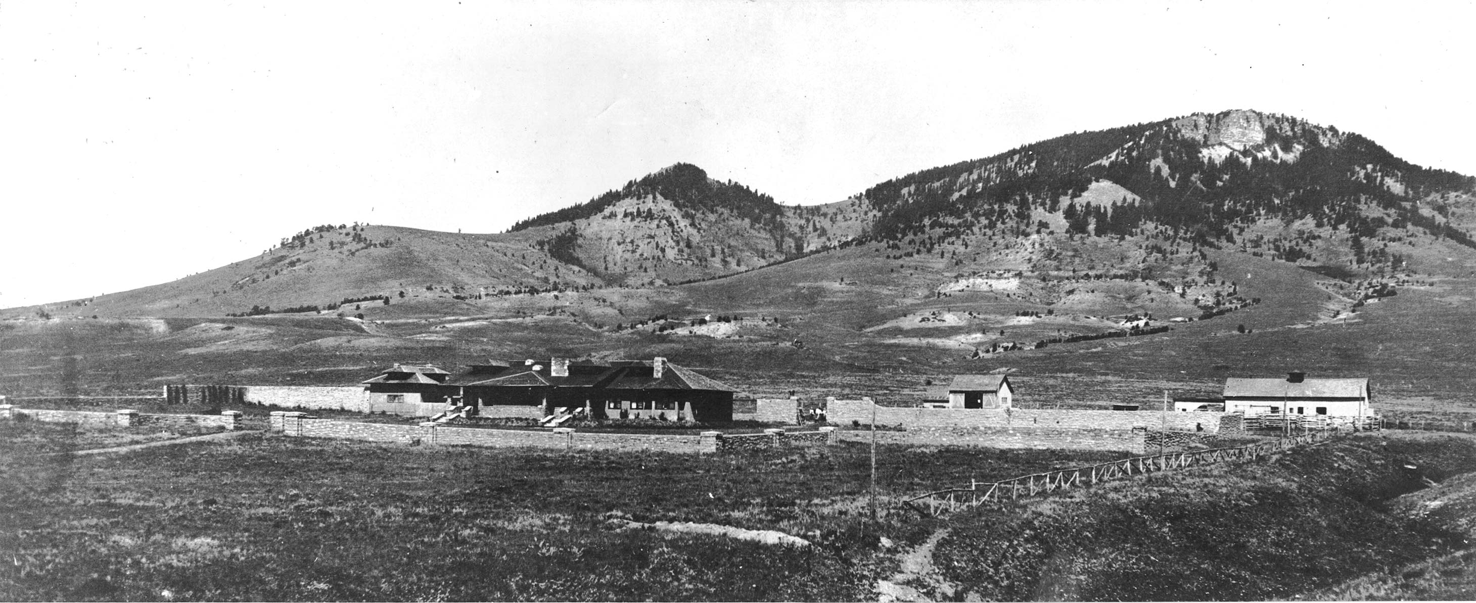'Crag Eyrie' in 1910, built by Thomas Greenleaf Blakeman and Charlotte Phillips Van Cleve Blakeman at the foot of Porcupine Butte near Melville, Montana.