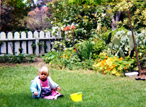 Our screened cabana on a redwood platform in the back yard behind the cottage |
