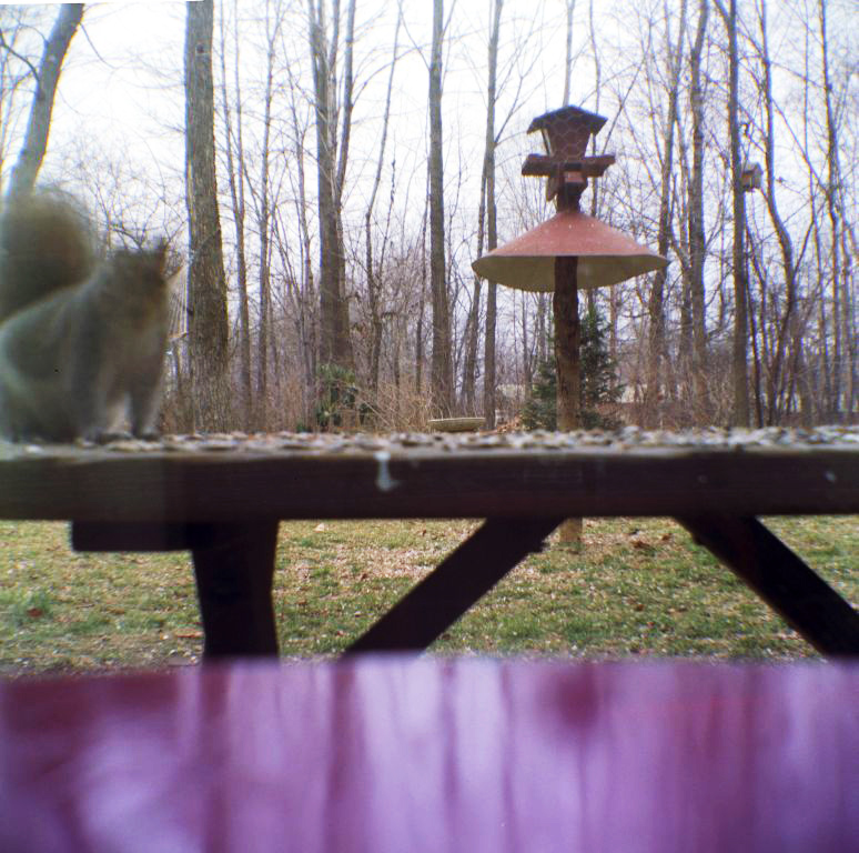Squirrel feasting on back yard table seed