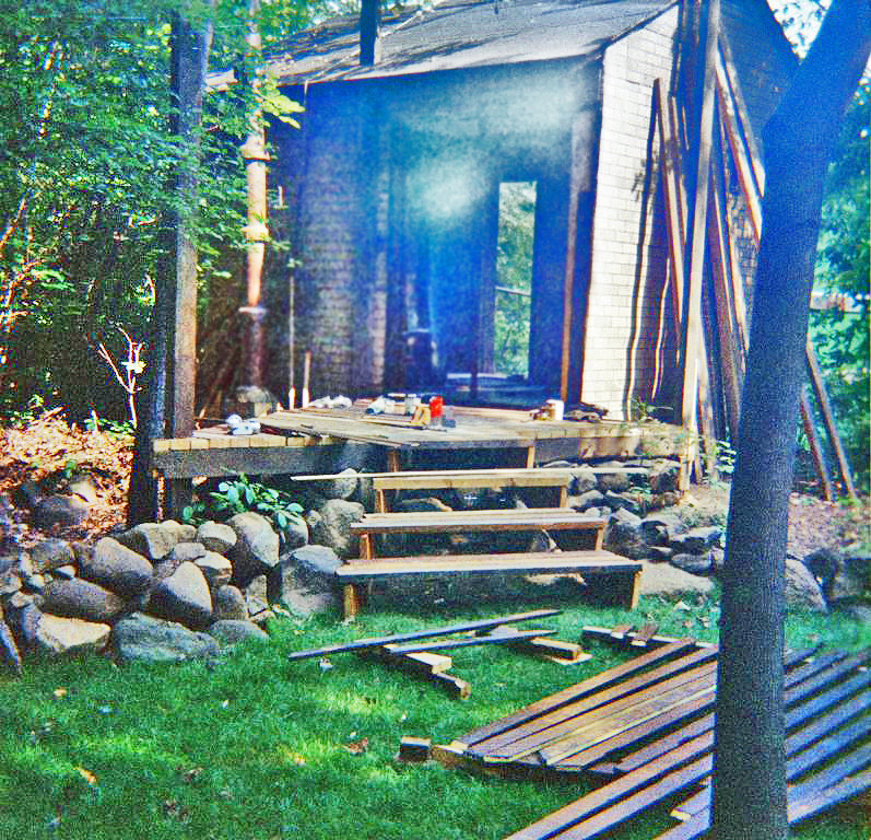 Our cottage deck built with recycled lumber from a New Bruswick wreaking yard