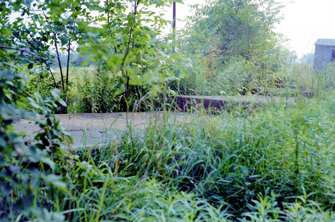 A stepped pathway wide enough for a wagon or harvester (without the trees)