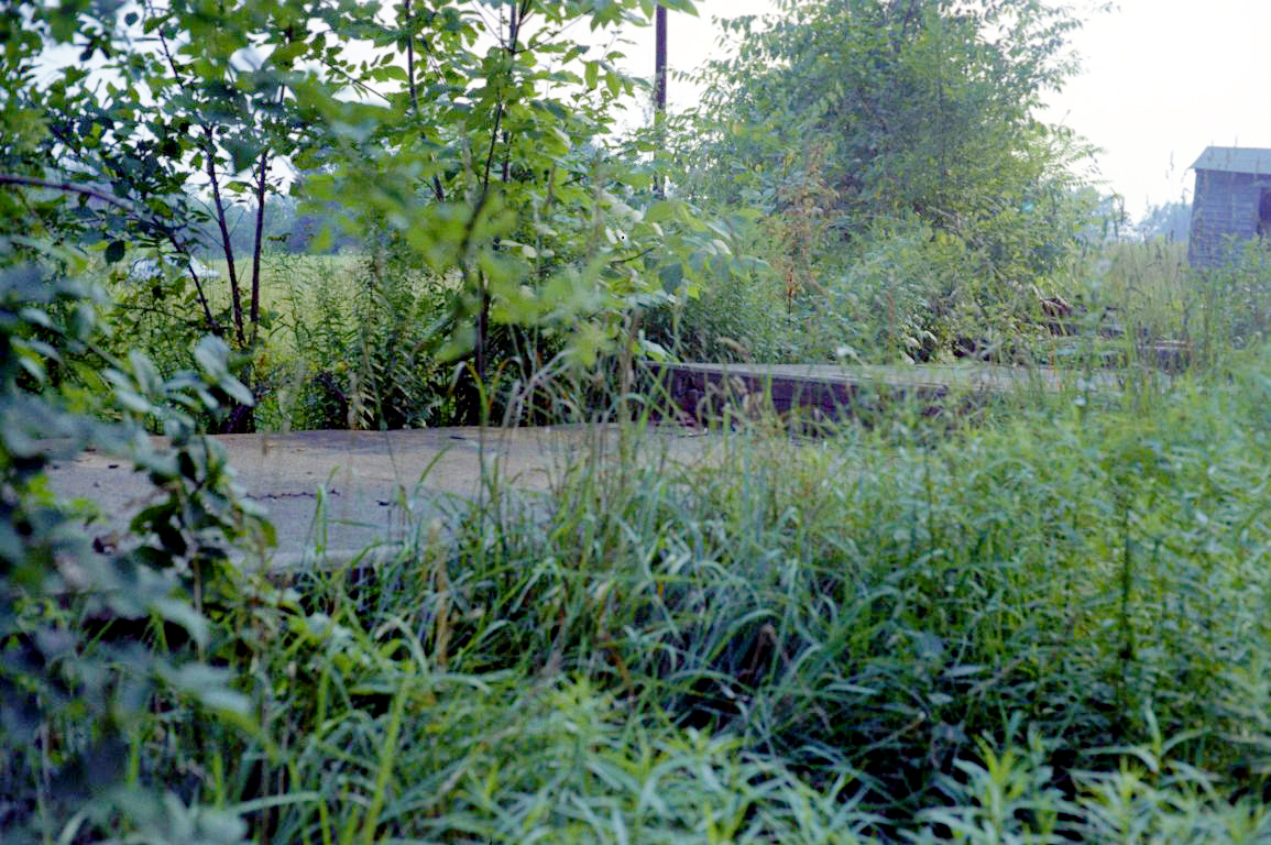 A stepped pathway wide enough for a wagon or harvester (without the trees)
