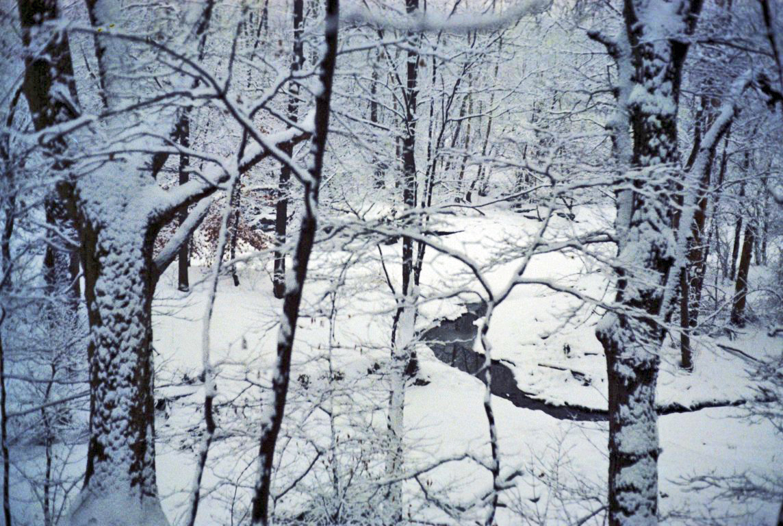 Snow and a small stream in our back yard