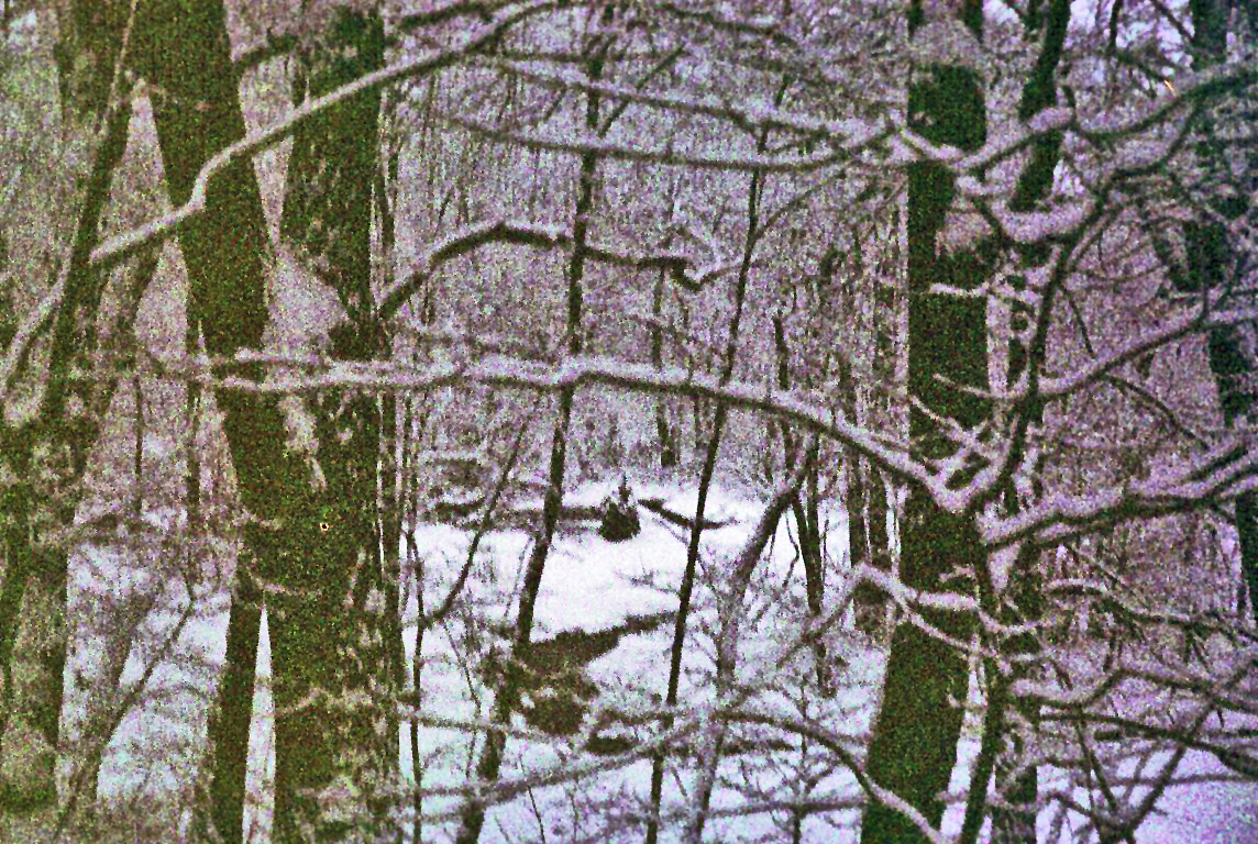 Snow and a small stream in our back yard