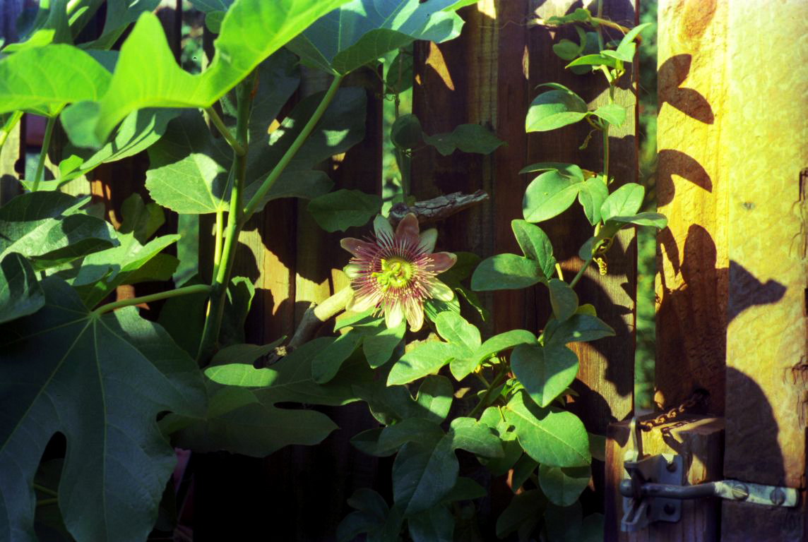 A Passion vine flower on our fence