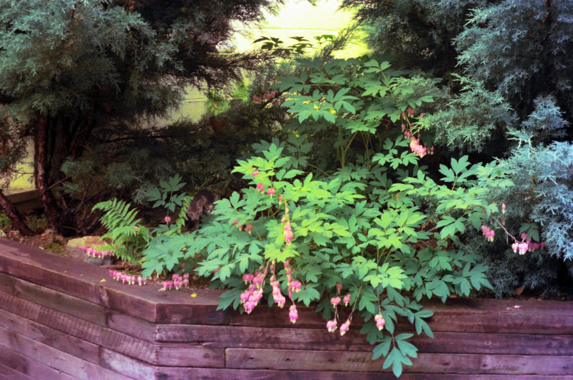 Bleeding Hearts volunteered in our Arborvitae garden
