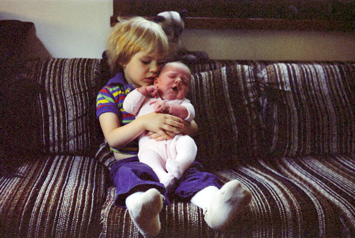 Darby and Bri Blakeman on the sofa