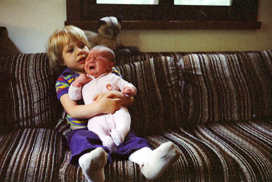 Darby and Bri Blakeman on the sofa