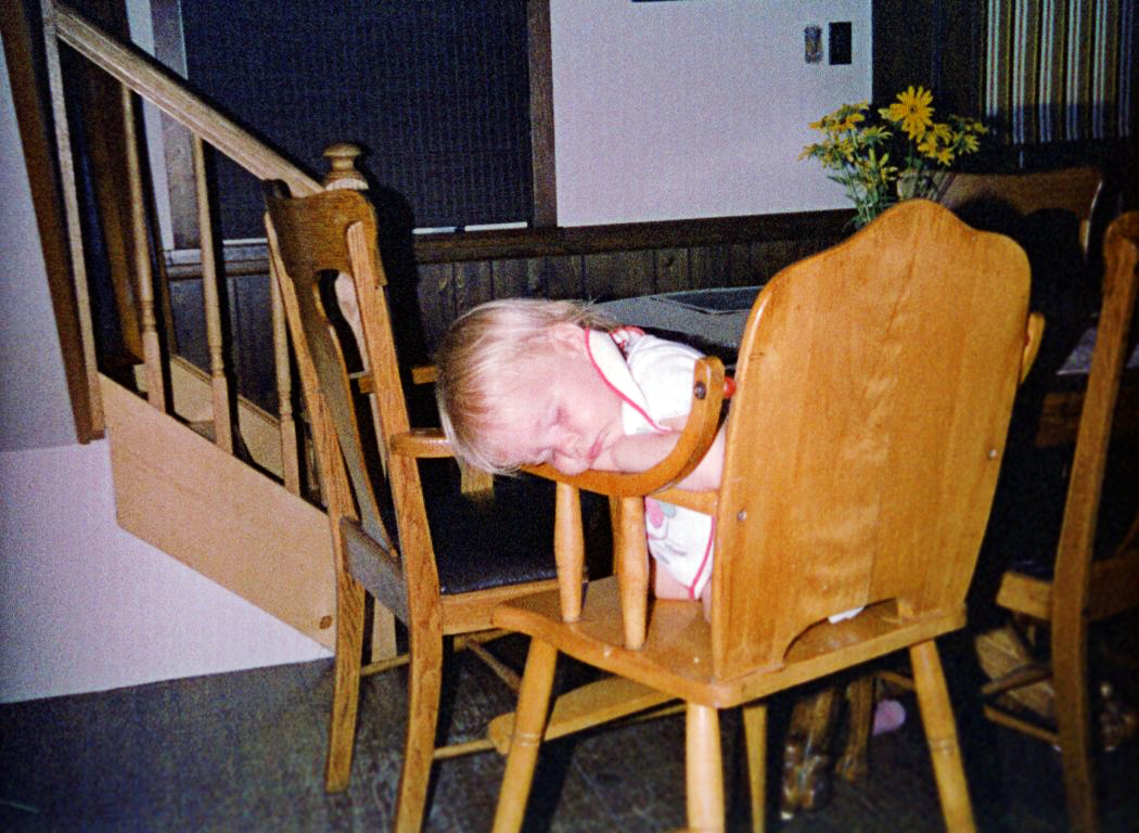 Brianny Blakeman sleeping in her highchair