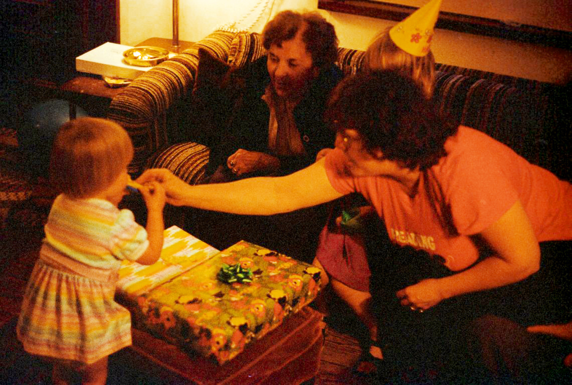 Opening her gifts