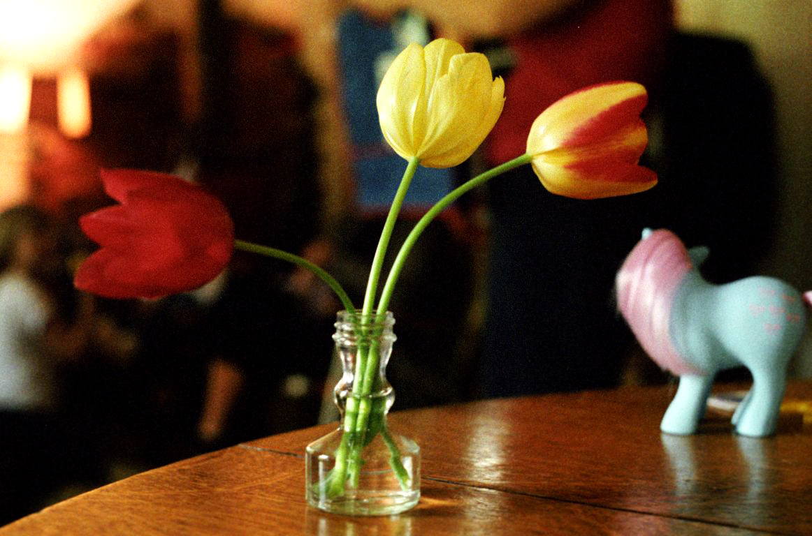 Tulips and a figurine at Bri Blakeman's 3rd birthday party