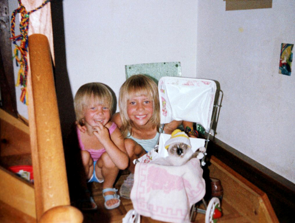 Brianny and Darby Blakeman with Catty in the doll carriage