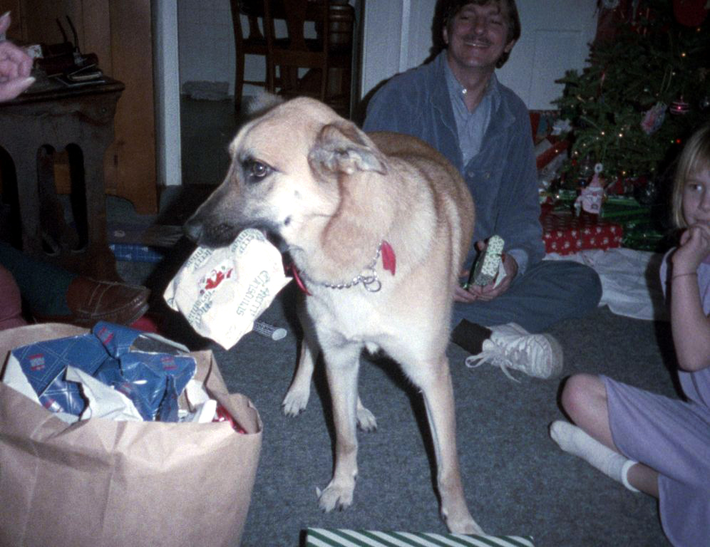 Pippin the dog, Van and Brianny Blakeman at Christmas on Mashnee Island, MA
