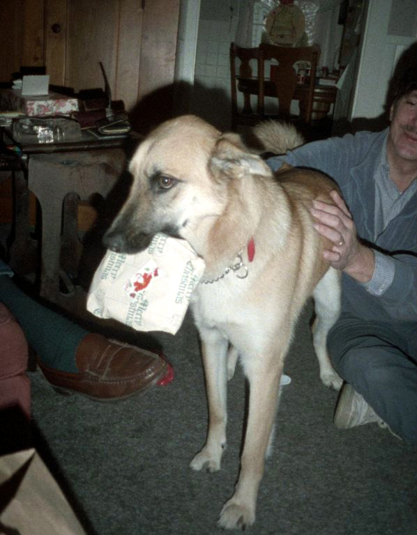 Pippin the dog and Van at Christmas on Mashnee Island, MA