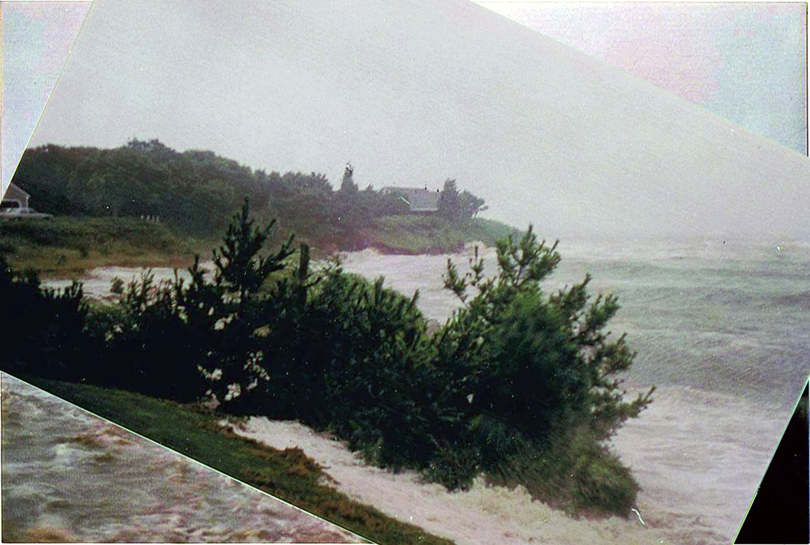 Buzzards Bay surf laps Mashnee Island during Hurricane Bob