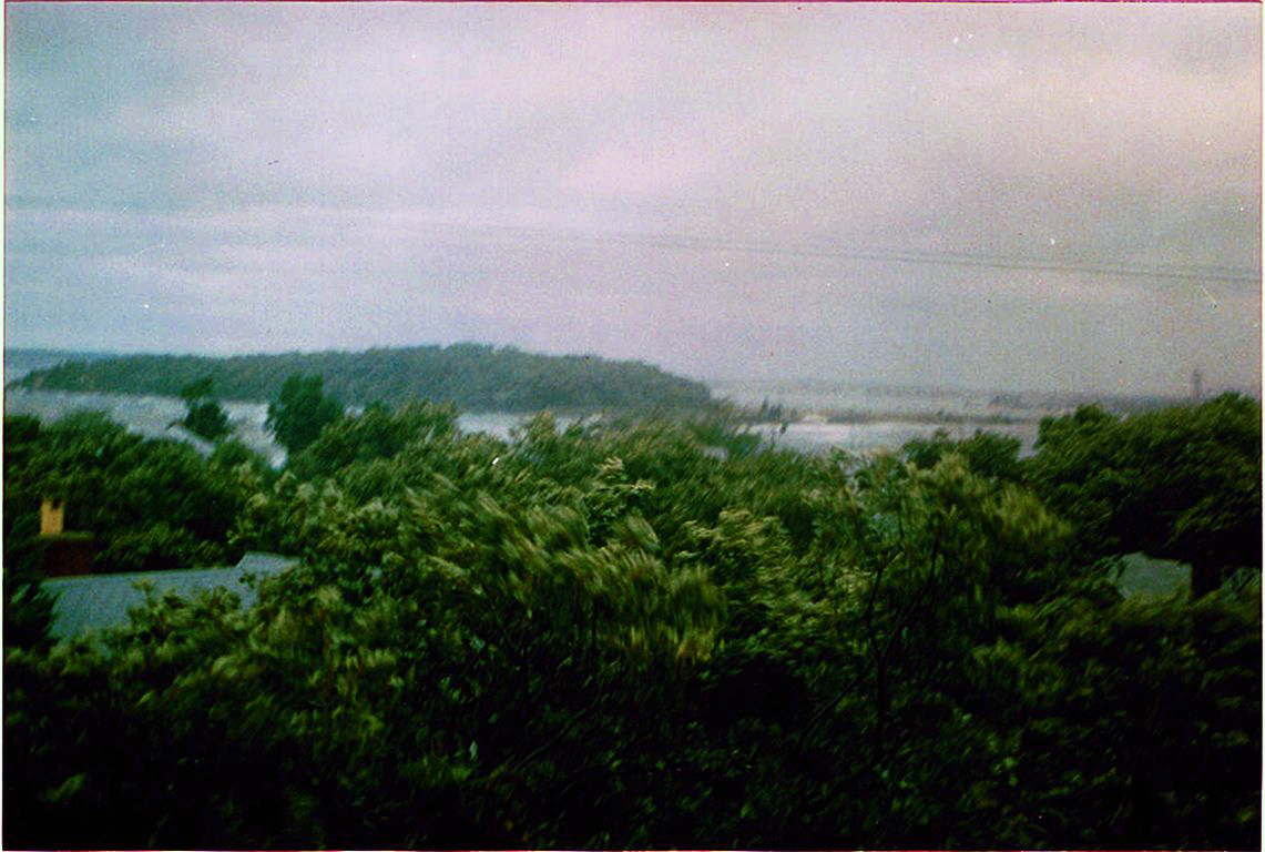 Hog Island and the Mashnee causeway during Hurricane Bob