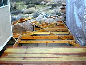 |  Forward deck framing |  Cradle & faucet on south side of trailer |  Rear deck frame of complex angles | |