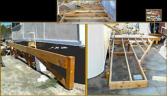 |  A new deck, almost done |  A cutout of the deck |  Filter & tubs at exterior deck faucet | |