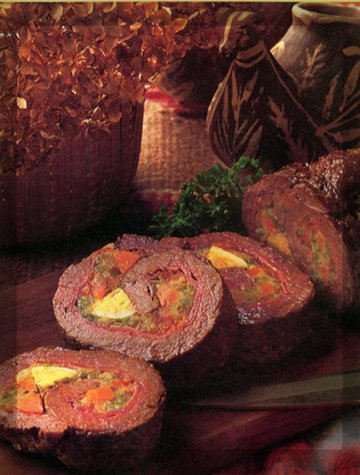 | Also known as "Carne Rellena", this hearty dish will stick to your ribs. Called Matambre in Argentina, this meal is a favored Latin American dish, usually skewered and braised. Not only hearty, it is also healthier than traditional Sunday roasts. Back Home |